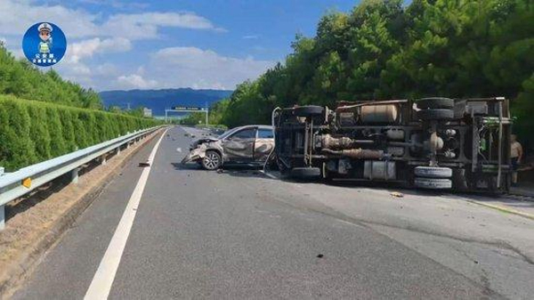 高速驚魂!司機隨意變道,三車連撞致貨車側翻,教訓