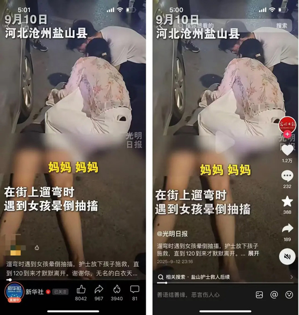 當(dāng)河北鹽山縣千童大街傳來(lái)呼救聲,一名女子突然倒地,情況危急。鹽山縣人民醫(yī)院護(hù)士霍平,當(dāng)時(shí)正抱著兩歲女兒與家人散步,聽(tīng)到呼救后,她毫不猶豫沖向現(xiàn)場(chǎng)。