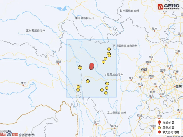 歷史地震:根據(jù)中國(guó)地震臺(tái)網(wǎng)速報(bào)目錄,震中周邊200公里內(nèi)近5年來(lái)發(fā)生3級(jí)以上地震共24次,最大地震是2025年10月9日在四川甘孜州新龍縣發(fā)生的5.4級(jí)地震(距離本次震中1公里),歷史地震分布如圖。