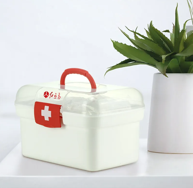 常備急救藥箱,包括紗布、碘伏、創(chuàng)可貼等。