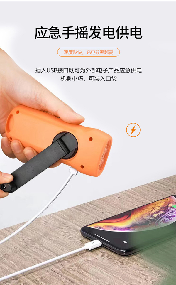 多功能手搖應(yīng)急手電,小巧輕便,便于攜帶,無論是放在家中、車?yán)镞€是旅行背包里,都能隨時(shí)取用。各種多功能性能,可在極端環(huán)境中穩(wěn)定運(yùn)行。