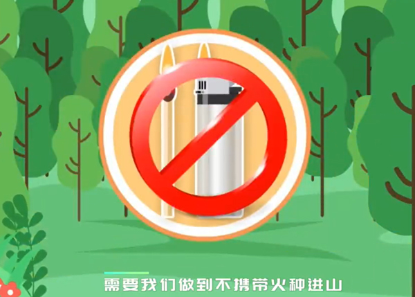 火種禁入山林:進山游玩、踏青,打火機、火柴等火種千萬不能帶,一旦引發(fā)火災,后果不堪設想。