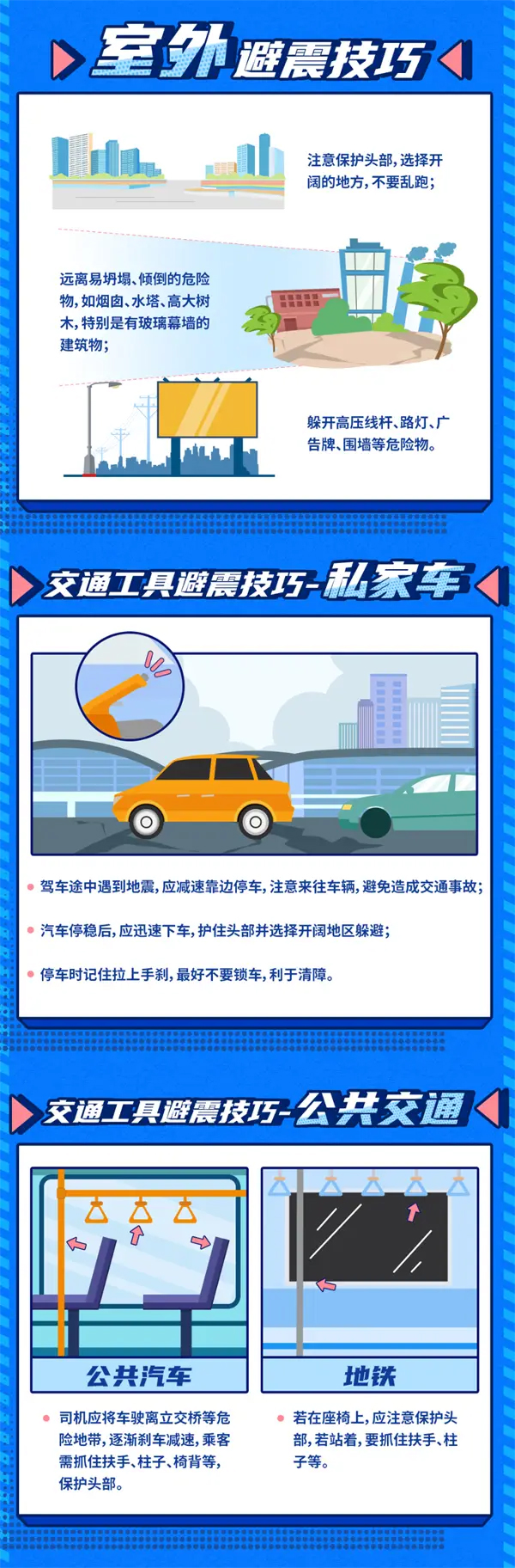 室外避險:如果你在室外,要盡量遠離建筑物、廣告牌、路燈等可能倒塌的物體。尋找開闊的空地,蹲下或趴下,用手保護頭部,避免被掉落的物品砸傷。
