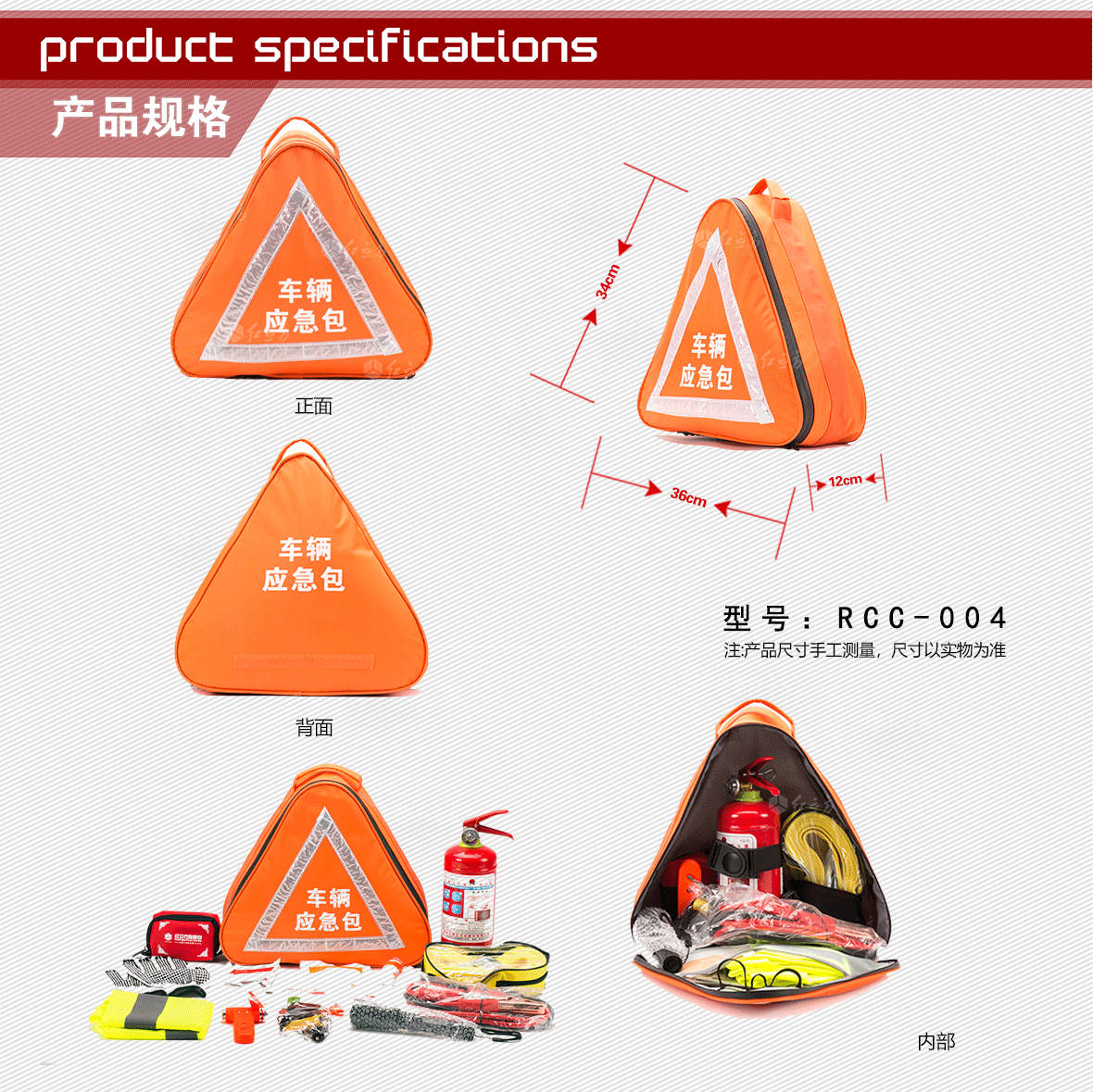 | 型號:RCC-004車載三角標志應急包 | 外包材質:滌綸 | 顏色:黃色 | ||||||